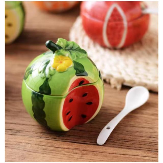 塩入れ スパイスボトル 調味料ケース 調味料ボトル 調味料入れ 調味料ポット 陶器 フルーツ型 230ml キャニスター 家庭用 砂糖入れ スパイス セラミック 容器 キッチン テーブル 保存容器 飲食店 プレゼント インテリア レモン スイカ かわいい