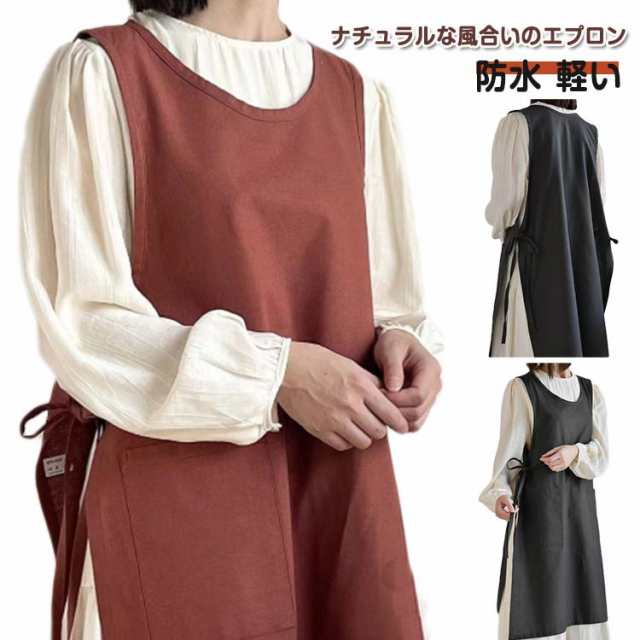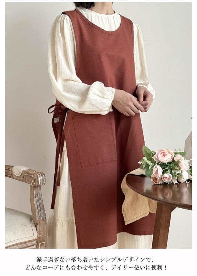 綿 防水 ワンピース エプロン ナチュラル コットン レディース 料理 カフェエプロン エプロンワンピース 軽い DIY 保育士 ガーデニング ワークエプロン プレゼント