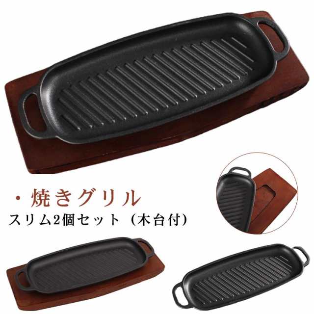 2個セット スリム 焼きグリル 木台付 魚焼きグリル 鉄分補給 直火 グリルプレート
