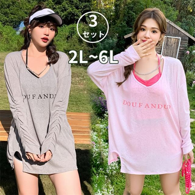 水着 レディース 大きいサイズ タンキニ 体型カバー ぽっちゃり 服みたいな 中学生 高校生 3点セット 長袖シャツ ラッシュガード ママ水着 セパレート 10代 20代 韓国 小胸 二の腕カバー 露出控えめ 女の子 30代 海 プール リゾート おしゃれい ピンク 黒 グレー XL-5XL