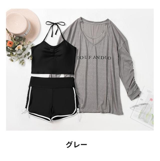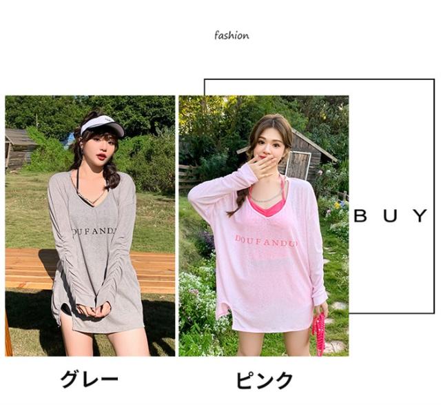水着 レディース 大きいサイズ タンキニ 体型カバー ぽっちゃり 服みたいな 中学生 高校生 3点セット 長袖シャツ ラッシュガード ママ水着 セパレート 10代 20代 韓国 小胸 二の腕カバー 露出控えめ 女の子 30代 海 プール リゾート おしゃれ 可愛い ピンク 黒 グレー k2064d7d7ld