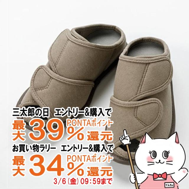 甲が全開するオープンタイプで履きやすく、歩きやすい介護用ルームシューズの定番。