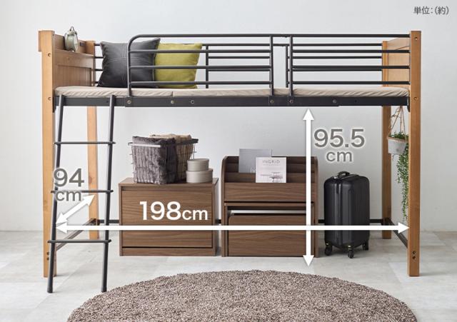 天然木とスチールを組み合わせたスタイリッシュなデザインのロフトベッドです。快適な睡眠をサポートするために安心・安全にこだわり、幅広い年代の方にお使いいただけます。お部屋に圧迫感を与えない程よい高さで、毎日の昇り降りやお布団の上げ下ろしが楽に行えます。