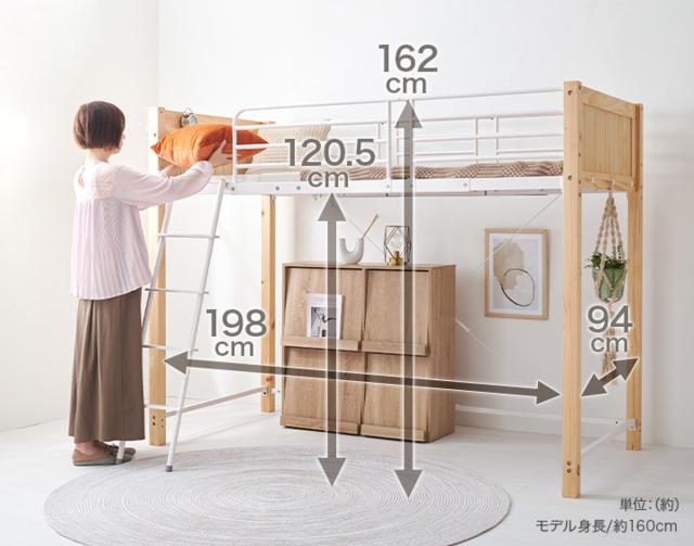 天然木とスチールを組み合わせたスタイリッシュなデザインのロフトベッドです。快適な睡眠をサポートするために安心・安全にこだわり、幅広い年代の方にお使いいただけます。お部屋に圧迫感を与えない程よい高さで、毎日の昇り降りやお布団の上げ下ろしが楽に行えます。