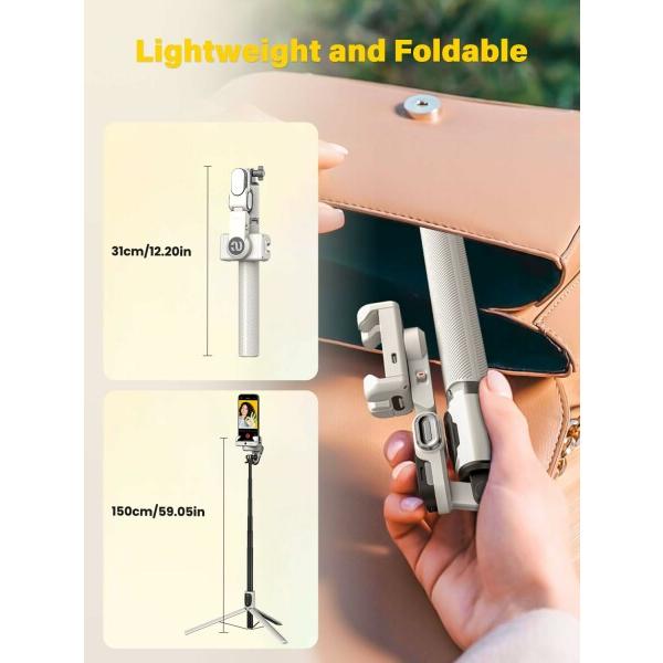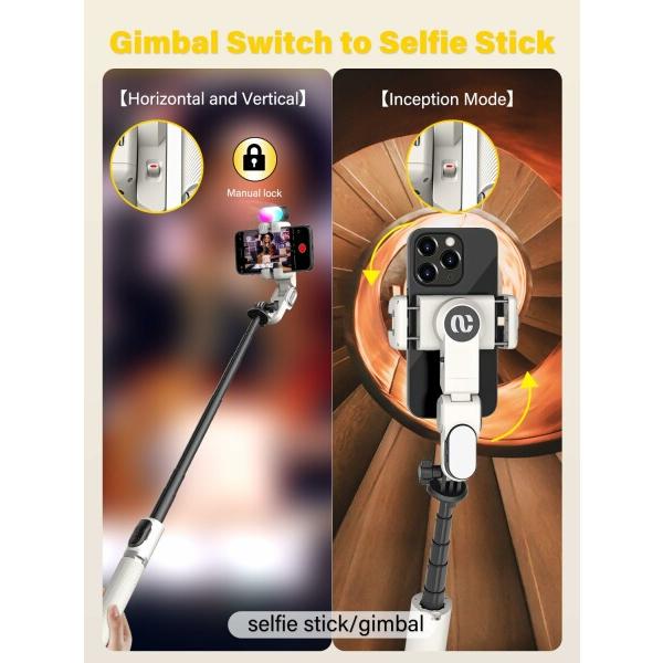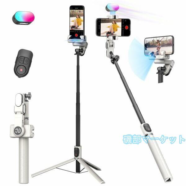 AOCHUAN SMART M2Proジンバルスタビライザー APPなしで顔追跡2軸スタビライザー RGBフィルライト、iPhone用とAndroid用携帯電話160cm延長ロッドスマートフォンスタビライザー(M2PROホワイト)