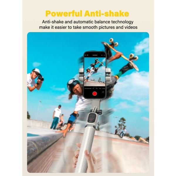 顔追跡AIジンバル スタビライザーSMART M2Pro。多機能スマホスタビライザージンバルはAI追尾式スマホスタビライザーだけでなく、自撮り棒やスマホホルダーにもなります。様々な状況で使用できます。TikTok、ビデオブログ、ライブスクリーミングに使用できます。この自撮りジンバルスタビライザーM2Proを使えば、自撮りや集合写真を撮ることもできる。一人旅ではスマホホルダーとしても使えます。様々な環境で便利なジンバルスタビライザーです。