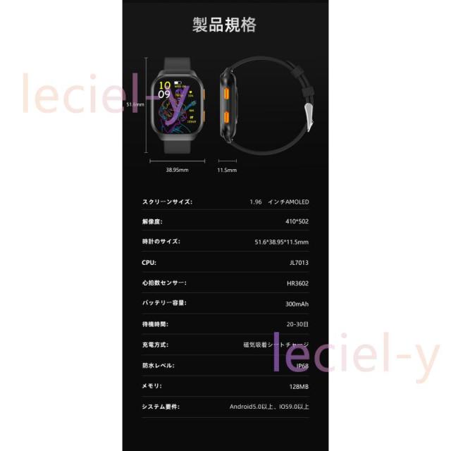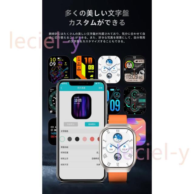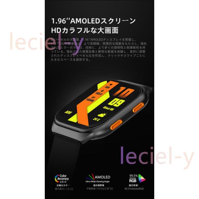 このスマートウォッチは業界初の1.96インチ大画面のタッチパネルを採用し、老眼の方にも見やすい!画質がより鮮明になり、高精度な大画面で通知や文字が一目瞭然に表示される。上下左右のスライド操作で機能の切替も簡単です。本体で6つの表盤画面搭載する以外、専用アプリで50+種類の文字盤を自由に設定することができます。他に、家族、恋人、アイドル、及びペット等の好きな写真も文字盤に設定可能で毎日新鮮さを味わえる。