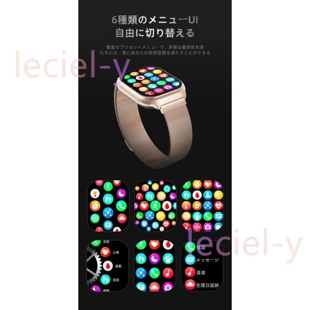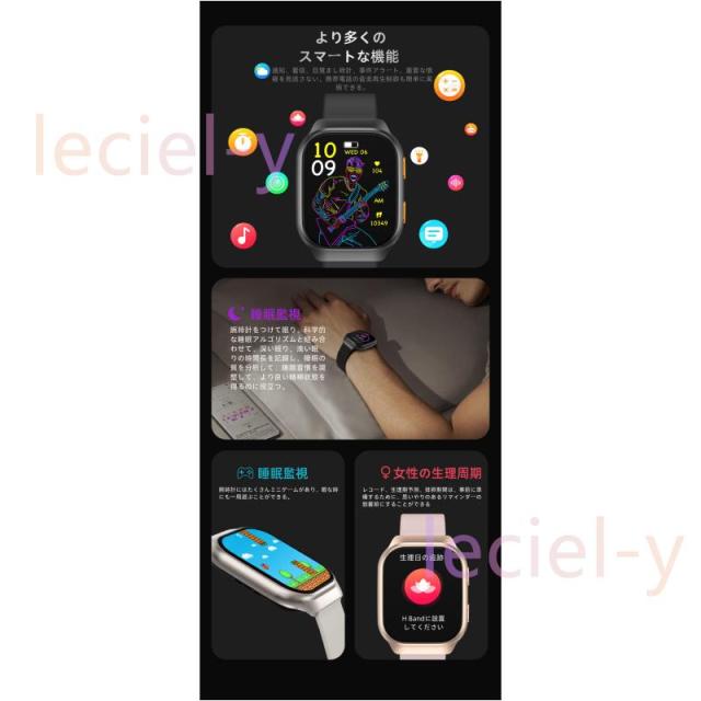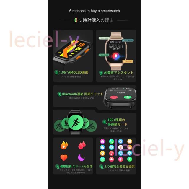 ●24H健康管理:多機能測定、通話可能、カロリー、24時間体温監視、女性の健康、アラート、AI診断測定、血中酸素、睡眠監視や心拍数などの測定機能付き