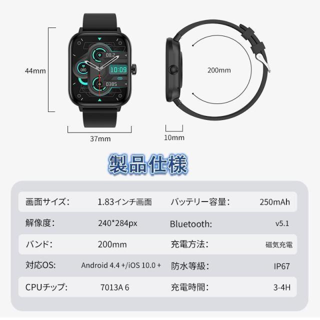スマートウォッチ 最新発売 血糖値 血圧測定 血中酸素 1.83インチ大画面 通話機能付き 体温 日本製 限定セール 24時間健康管理 高精度 心拍数 睡眠管理 着信通知 運動モード 2025最新