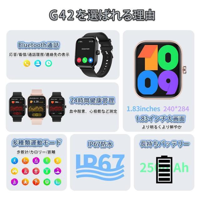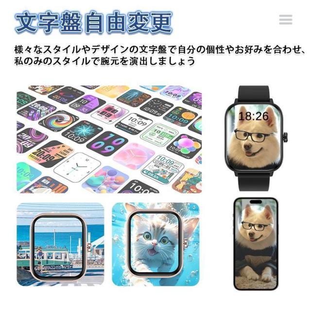 スマートウォッチ 血糖値 血圧測定 血中酸素 1.83インチ大画面 通話機能付き 体温 日本製 24時間健康管理 高精度 心拍数 睡眠管理 着信通知 運動モード 2025最新