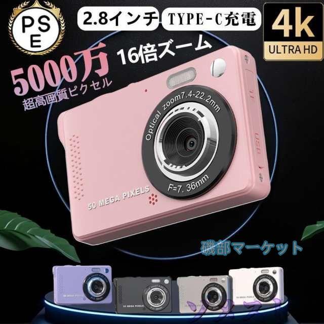 デジタルカメラ デジカメ 5000万画素 4K 2.8インチ 16倍ズーム 高画質 AF機能 動体検知機能 自撮り 手振れ補正 TYPE-C USB充電 フィルター付 軽量 スマホ転送