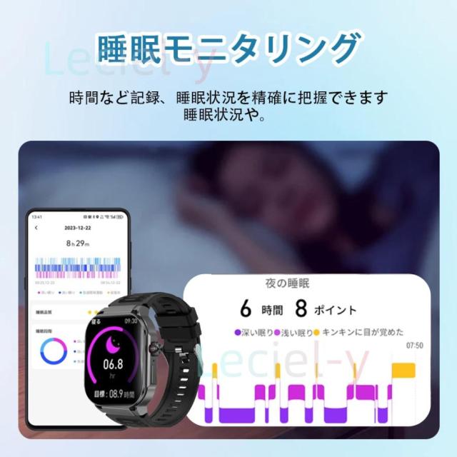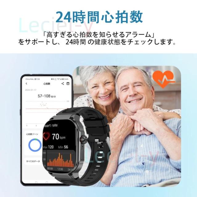 スマートウォッチにはAI診断値、血中酸素、心拍数、睡眠、音楽制御、電卓、メッセージ通知、天気予報、カメラ制御、アラーム、懐中電灯、腕上げ点灯、スマホ探し、ストップウォッチなど充実の機能を搭載して、日常生活をより便利にします。オフィス仕事や在宅勤務など必要な座りがち注意、水飲み通知機能付きます。また、専用APPと同期させると、詳しいデータが日別に確認できます。父の日、母の日、敬老の日、クリスマス、誕生日などに一番適用するプレゼントです。
