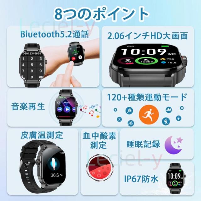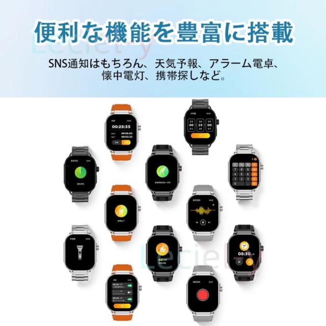血圧、体温、血中酸素、通話機能付き、カロリー、心拍数などの測定機能を一瞬で確認でき、スマホと同期した後アプリで健康状態データを一目で分かります。