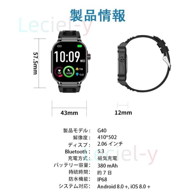 高解像度大画面を採用され、画質がより鮮明になり、より大きく高精度な大画面で文字を表示されます。例のない快適な視覚感と優れた操作感をもたらします。例のない快適な視覚感と優れた操作感をもたらします。本体の文字盤を搭載する以外、専用アプリで多種類文字盤を切り替えができるし、家族や恋人、アイドルなどの写真を文字盤の画面に変えることもできます。毎日のお気持ちによって、文字盤スタイルを取り替え可能。