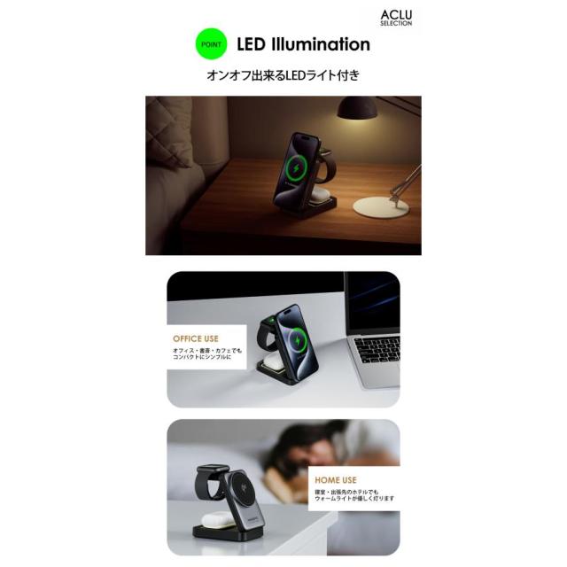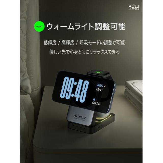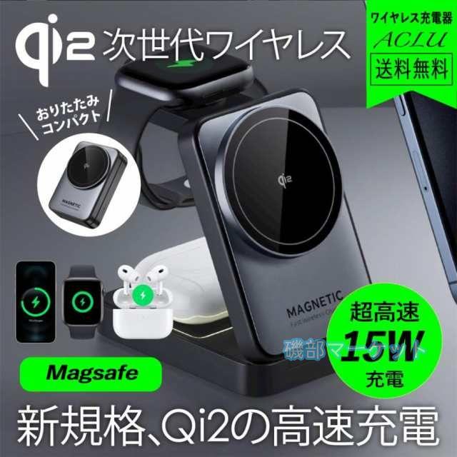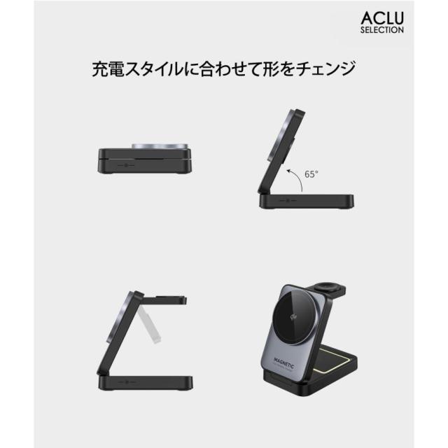 【新規格】 最新発売 Qi2 ワイヤレス充電器 3in1 iPhone 15W 高速充電 MagSafe対応 限定セール マグセーフ マグネット 3-in-1 Qi2ワイヤレス充電スタンド iPhone16 15 iPhone14 ACLU
