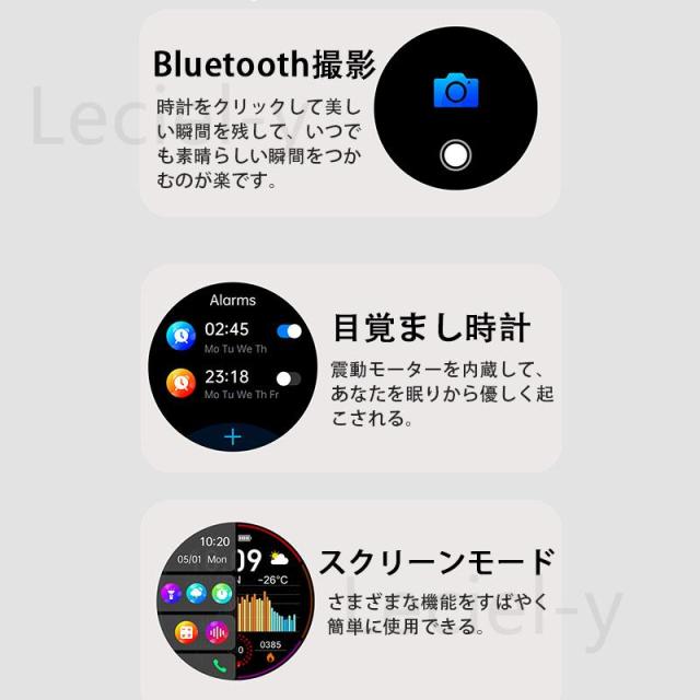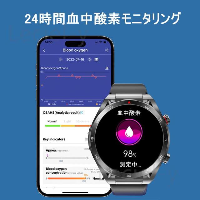 ●24H健康管理:多機能測定測定、、MET代謝当量、24時間体温監視、アラート、AI診断測定、血中酸素、睡眠監視や心拍数などの測定機能付き