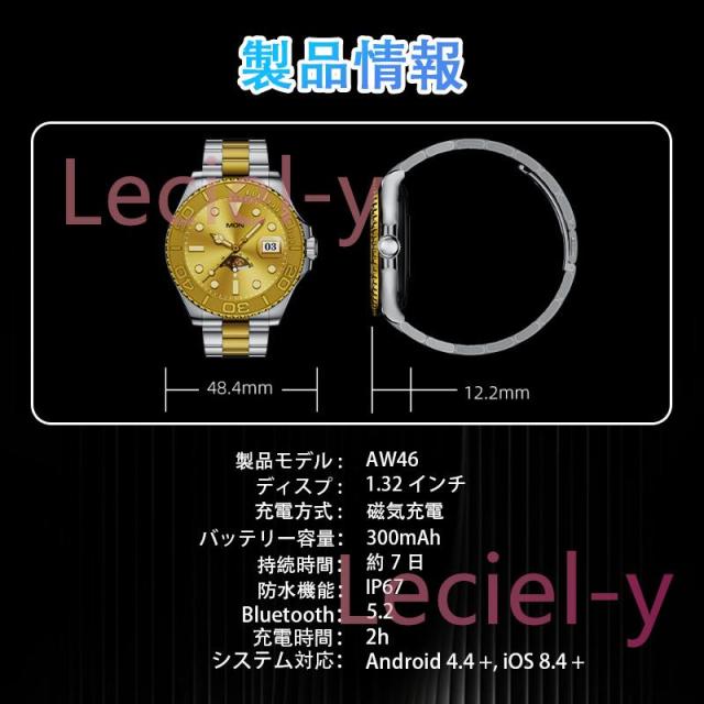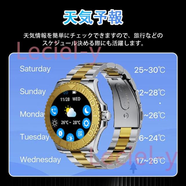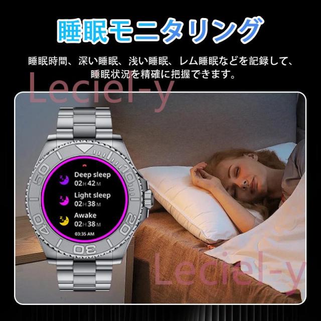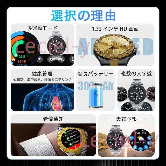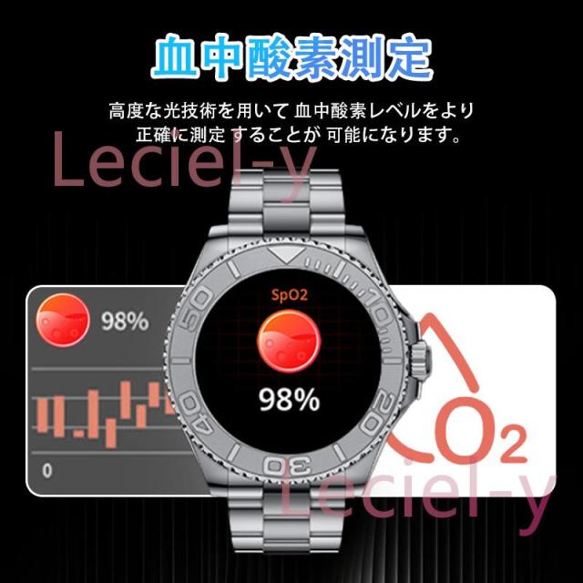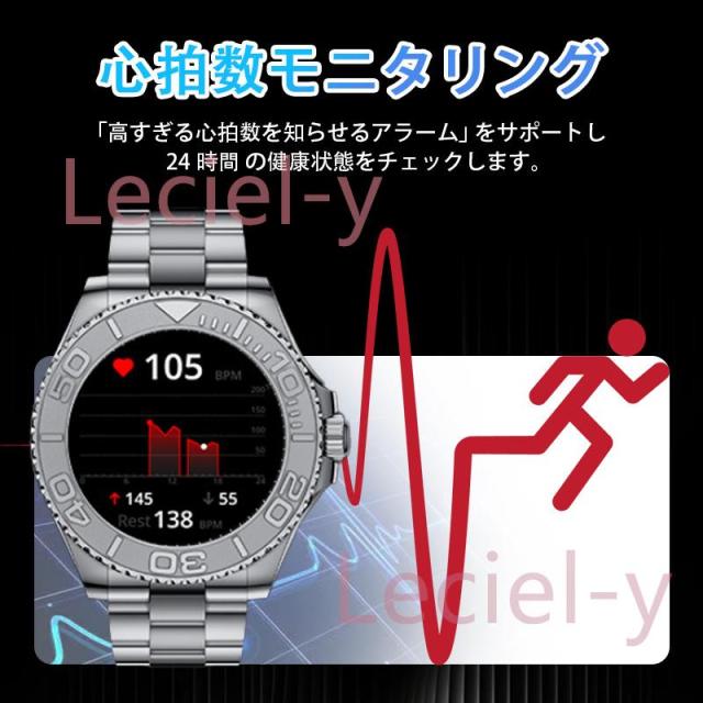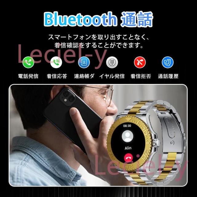 ●24H健康管理:血圧測定、通話可能、24時間健康監視、アラート、AI診断測定、血中酸素、睡眠監視や心拍数などの測定機能付き