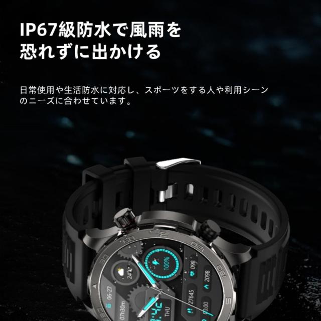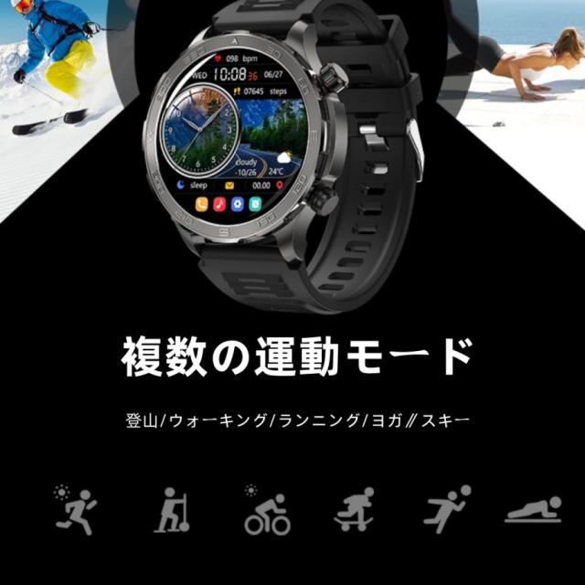 【通話機能?着信通知】ペアリング設定を済まして、連携した携帯電話に届いた着信やメール、LINE、Skype、Facebook(Meta)、Twitter(X)、Instagram、SNSの受信などの通知をスマートウォッチに同期できます。着信やメッセージを見逃す心配はいりません。スピーカーとマイクを内蔵し、携帯電話を出さなくても、通話することができます。
