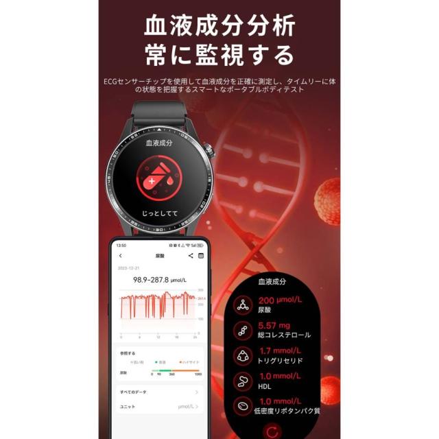 スマートウォッチ 最新発売 血圧測定 通話機能 心電図 心拍数 歩数計 体温 睡眠管理 限定セール 運動モード 24時間SOS 血液成分 体組成2024最新 年寄り 健康 安心