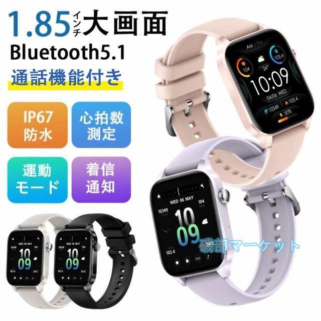 スマートウォッチ 最新発売 血圧 1.85inchスマートウォッチレディース/メンズ、Bluetooth5.1通話機能日本製センサー搭載マカロンカラー心拍数モニター 限定セール