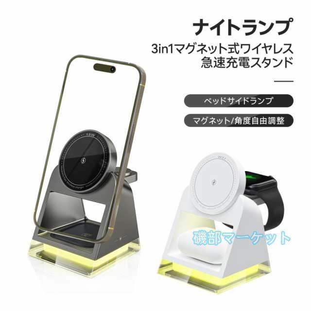 MagSafe充電器 最新発売 スマホスタンド ベッドサイドランプ 3台同時 iPhone15 14 13 12 限定セール Airpods pro iWatch 急速 高速 無線 チャージャー 置くだけ 15W