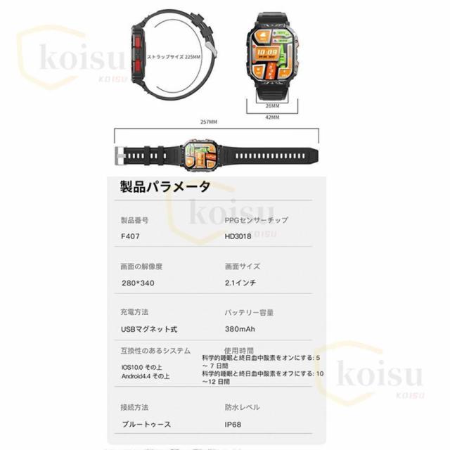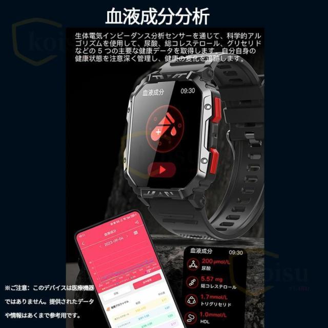 スマートウォッチ 血糖 軍用規格 血圧測定 心拍数 健康管理 血中酸素 着信通知 通話機能 歩数計 体温測定 睡眠管理 日本製センサー 音楽?カメラ制御 天気予報