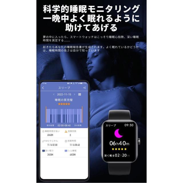 スマートウォッチ 日本製センサー 血圧測定 体温測定 心拍数 24時間健康管理 着信通知 1.91インチ Phone Android 着信通知 睡眠モニタリング 運動モード ギフト