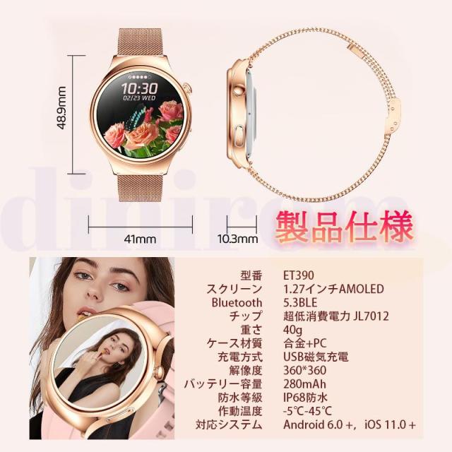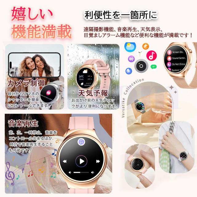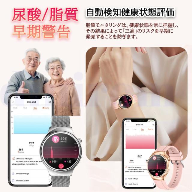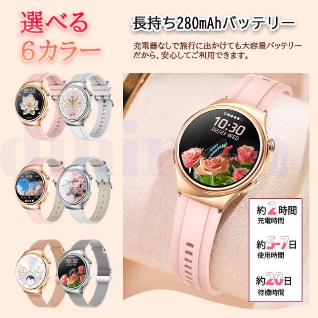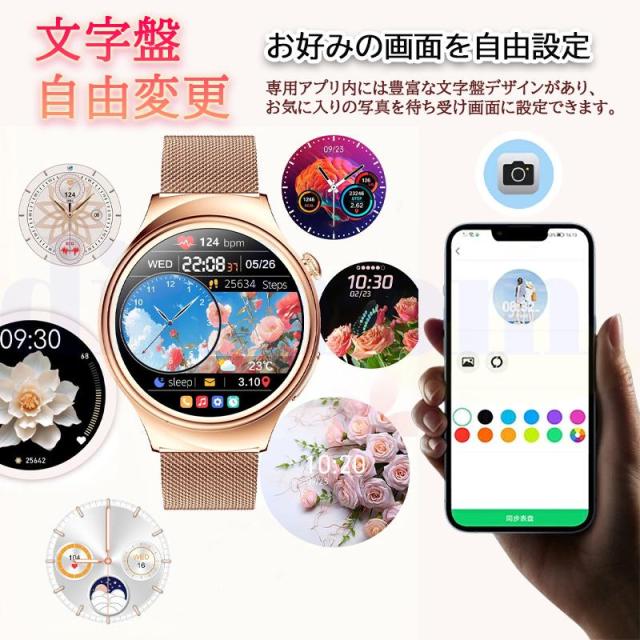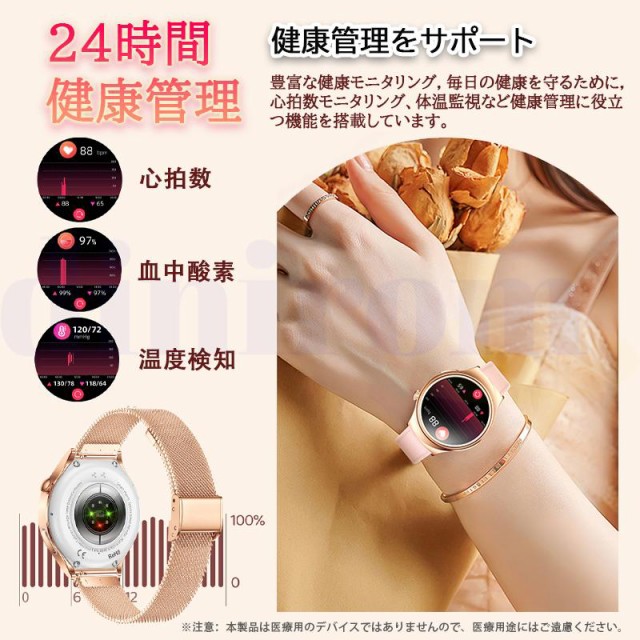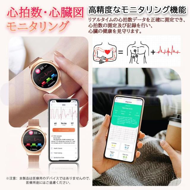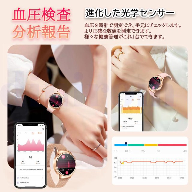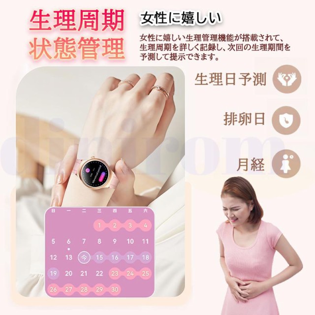 スマートウォッチ 血圧測定 ECG心電図 Bluetooth5.3通話機能 高精度心拍数 睡眠検測 血中酸素 女性生理管理 文字盤自由変更 女性用ギフト