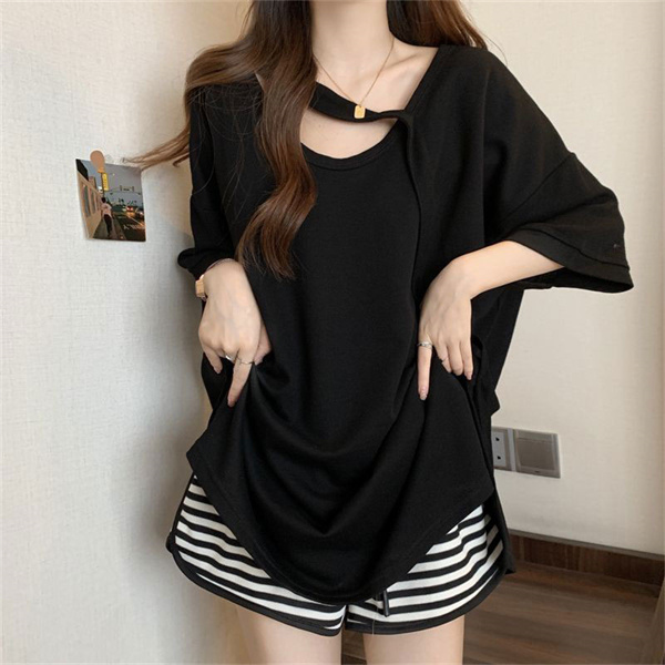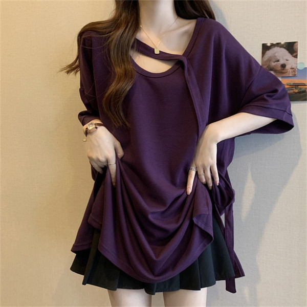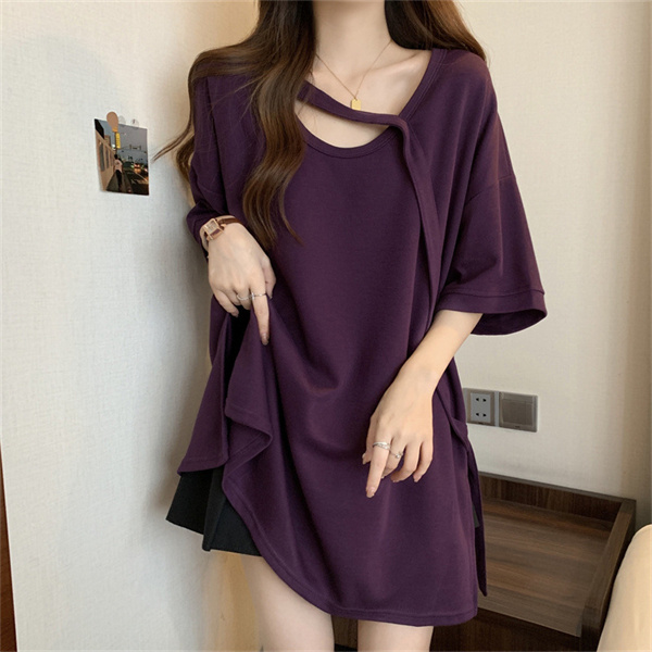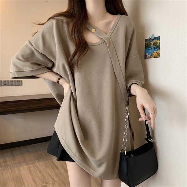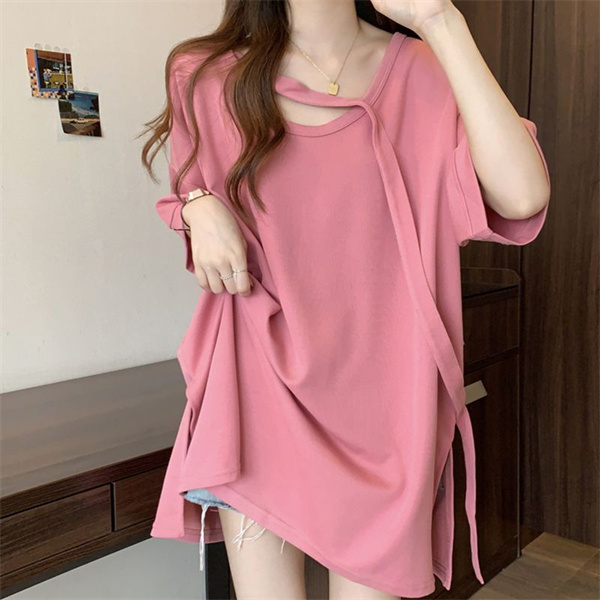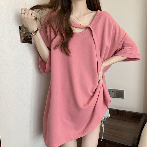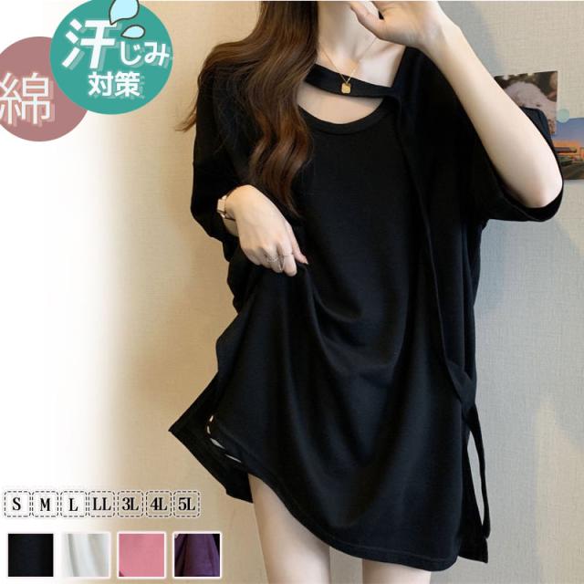 Tシャツ ゆったり レディース 半袖 デザイン Uネック 綿 トップス 夏 カットソー カジュアル 快適 薄手 涼しい 体型カバー コーデ 春 涼しい