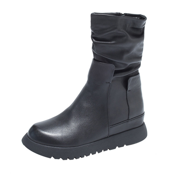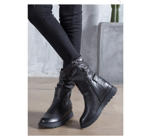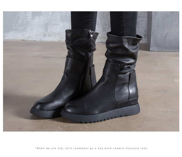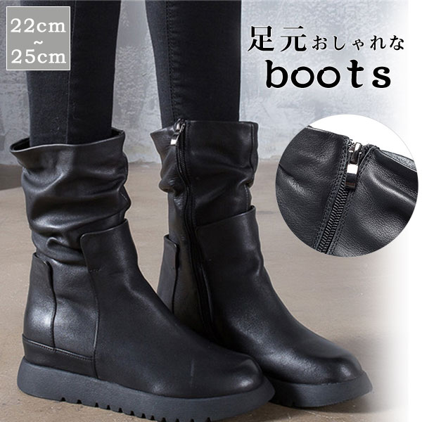 送料無料 ショートブーツ レディース 本革 サイドジップ 厚底 ブーツ 長靴 インヒール フラット 歩きやすい 上品 高級感 カジュアル バイク