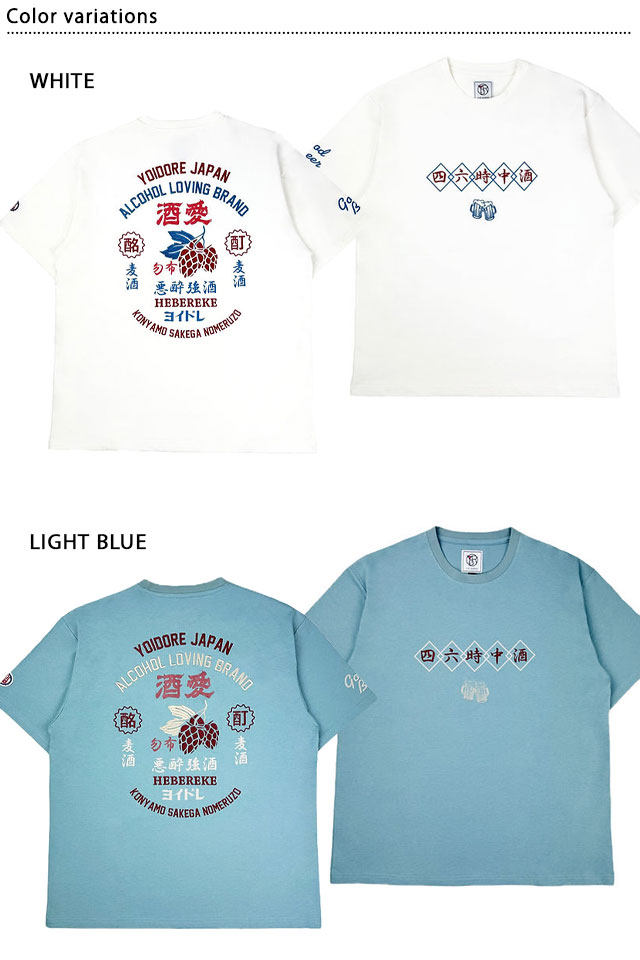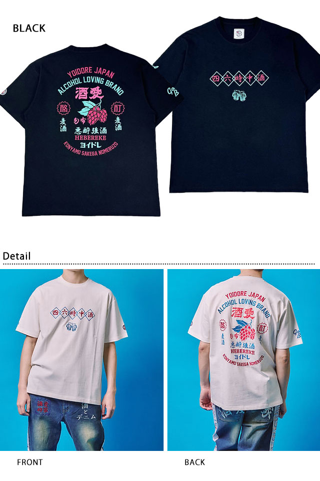 四六時中 酒半袖Tシャツ YOIDORE 825620 ヨイドレ お酒 よいどれ 刺繍 オーバーサイズ ユニセックス