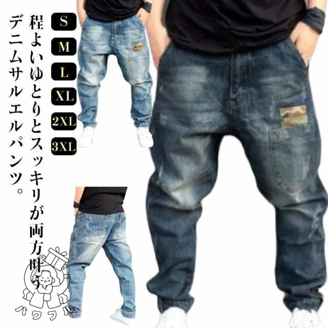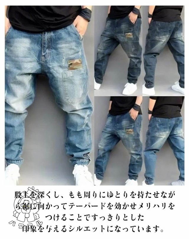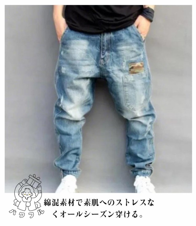 【パワフル】デニム ジーパン ジョガーパンツ 春 テーパード ゆったり デニムサルエル メンズ テーパードパンツ 秋 デニムパンツ ポケット付き ジーンズ Gパン 大きいサイズ パンツ ルーズ 夏 サルエルパンツ ブルー ストリート カジュアル 韓国 かっこいい