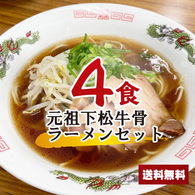元祖牛骨下松ラーメンセット 4食 【麺+スープ】 牛骨しょうゆ 下松 ポイント消化 乾麺 インスタント 即席 送料無料