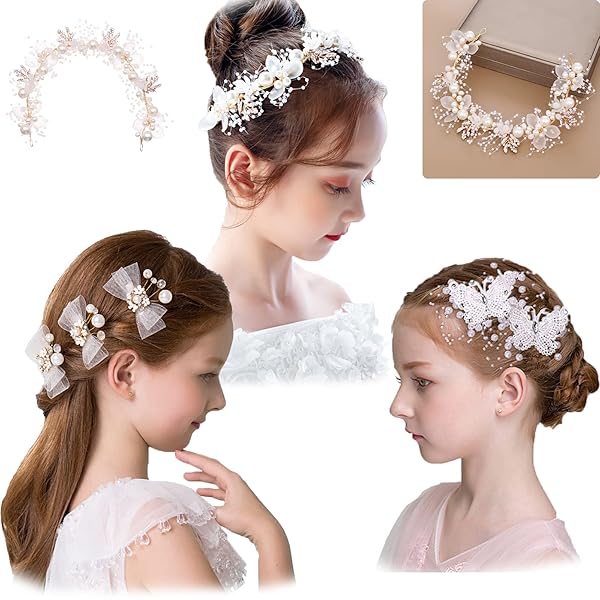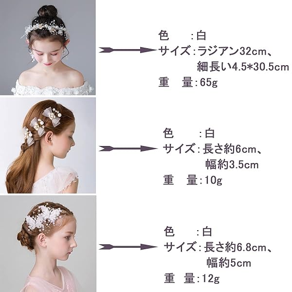 子供 髪飾り ヘアアクセサリー 結婚式 髪飾り 3点セット 子供 発表会 髪飾り こども ヘッドドレス ヘアピン 髪留め パール 写真撮影 パール ウェディング 髪飾り カチューシャ 結婚式