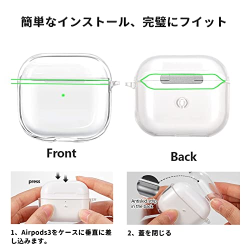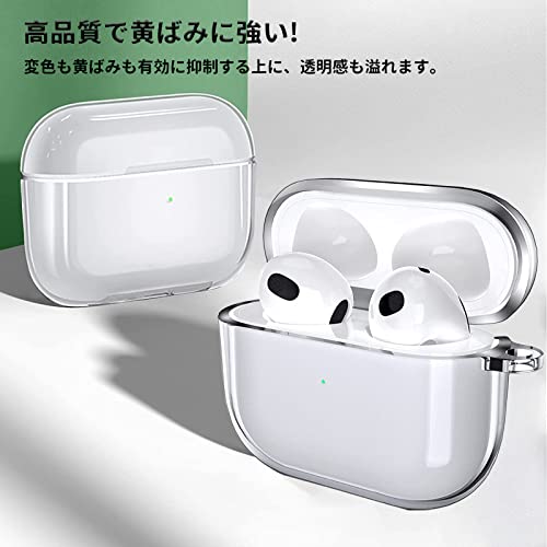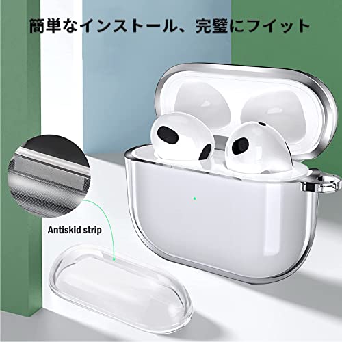 AirPods 3 ケース AirPods 第3世代 ソフトTPU素材 分離式 LED可視 ワイヤレス充電防塵 耐衝撃 全面保護カバー アップルイヤホン 保護ケース 紛失防止 カラビナ付き (クリア)