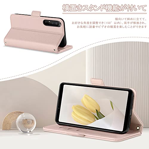 Xperia 1 IV ケース 手帳型 おしゃれ 人気 エクスペリア 1 IV かわいい シンプル SO-51C レトロ SOG06 上品 女性 カード収納 肌感高級PUレザー マグネット スタンド機能 衝撃吸収 ストラップホール 落ち着いた色 (サーモンピンク)