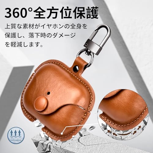 【高品質素材】高品質レザーイ製で、滑らかな触り心地が魅力、肌に吸い付くようなグリップ力を実現し安心感があり、触り心地が良いだけでなく、優れた保護力を発揮します。お使いのAirPodsを落下による衝撃や擦り傷からしっかり保護します。