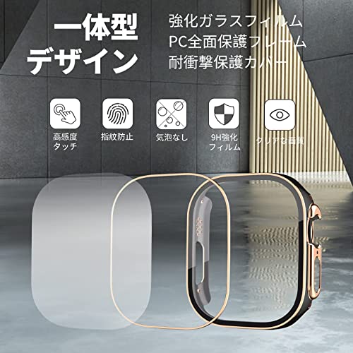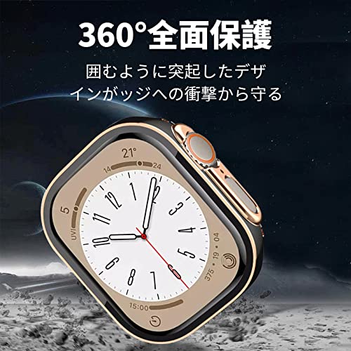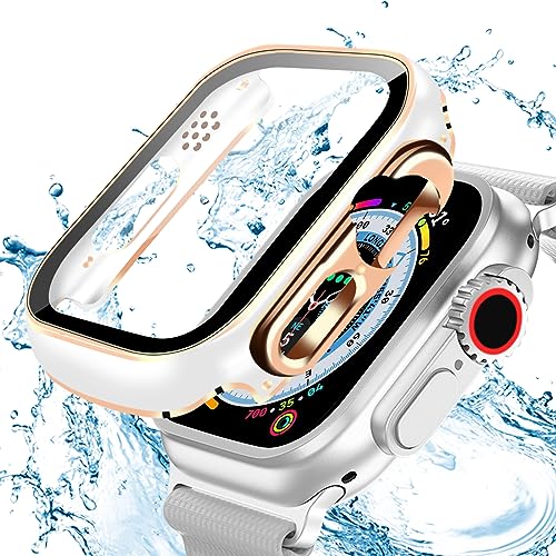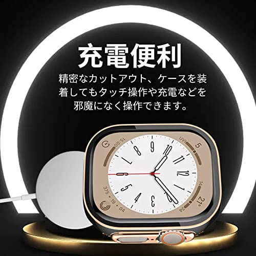 Apple Watch ケース 49mm 防水ケース 3D直角エッジデザイン メッキ加工 カバー ガラスフィルム ケース 耐衝撃 カバー 全面保護 高透過率 Apple Watch Ultra2 / Ultra 49mm アップルウォッチウルトラ2 / ウルトラ 49mm ホワイト / ローズゴールド 2枚