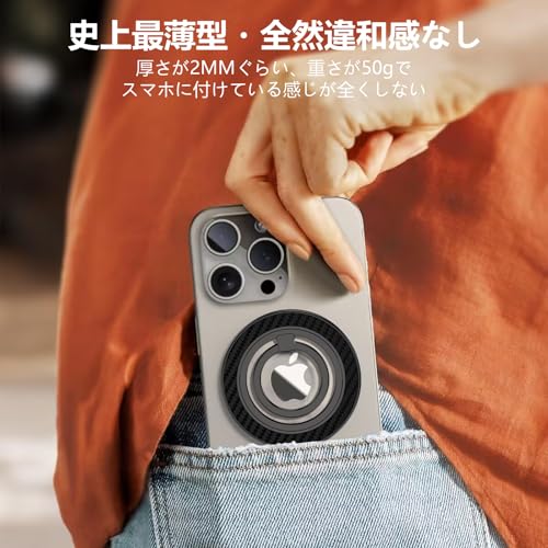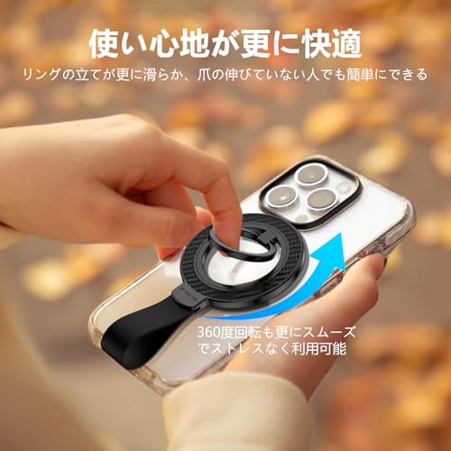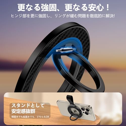 スマホリング マグセーフリング 携帯リング 両面マグネット 角度調整可 360°回転/薄型 落下防止 指輪型 スタンド機能 マグネットリング ホールドリング フィンガーリング 高級合金素材 iPhone 16 15 14 13 12 Pro Max Androidに対応 2個セット ブラック