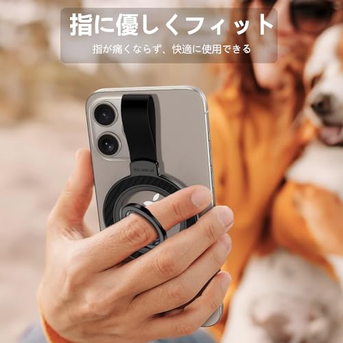 スマホリング マグセーフリング 携帯リング 両面マグネット 角度調整可 360°回転/薄型 落下防止 指輪型 スタンド機能 マグネットリング ホールドリング フィンガーリング 高級合金素材 iPhone 16 15 14 13 12 Pro Max Androidに対応 2個セット ブラック ...