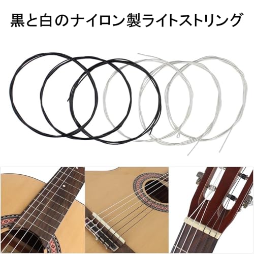 ギター弦 ナイロン クラシックギター用 6弦セット 交換部品用 ギターアクセサリー(黒白)