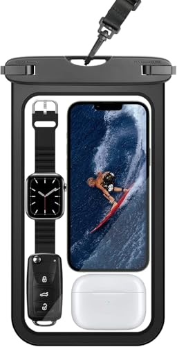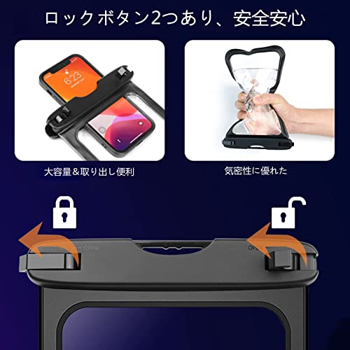 スマホ 防水 ケース 大きめ IPX8 iPhone 海 プール お風呂 水中撮影 顔認証 タッチ操作 携帯防水ケース 首かけ 海水浴 ダイビング 釣り iPhone 15 14 plus pro promax 13 mini 12 11 プロ マックスse Xperia に対応 8.5インチ 黒