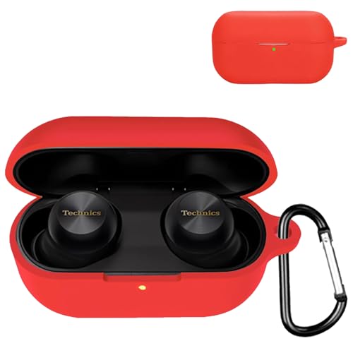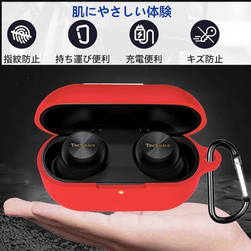 テクニクス Technics ワイヤレスイヤホン EAH-AZ100 ケース シリコン ワイヤレス充電可能 キーホルダー付き 軽量 キズ防止 スリム 耐衝撃 防水 防塵 紛失防止 柔らかい eah-az100 ケース(レッド)