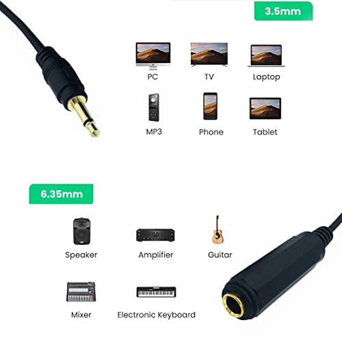 オーディオ変換ケーブル 6.35MM モノラル標準プラグメス to 3.5MM ステレオミニジャックオス ホームオーディオケーブル 1.5M