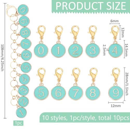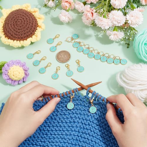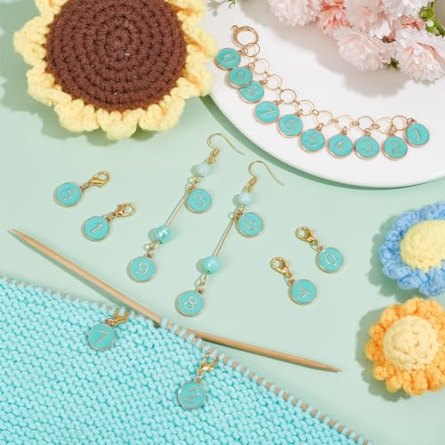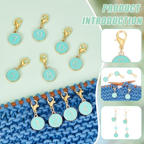 段数マーカー 11点 数字ステッチマーカー 0〜9 合金&エナメル かぎ針編み用ローカウンター 段かぞえマーカーセット 編み物マーカー 段数リング 編み物ツール 収納ケース付き ターコイズ 送料無料
