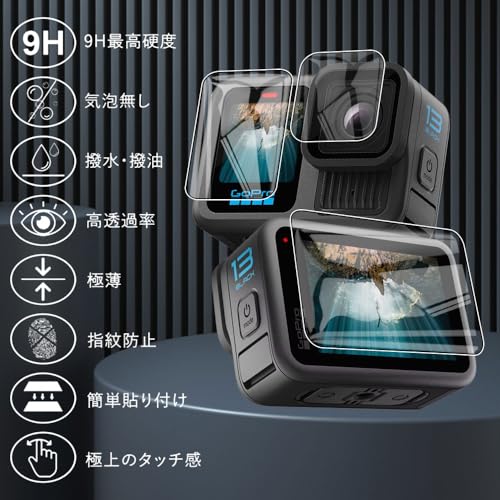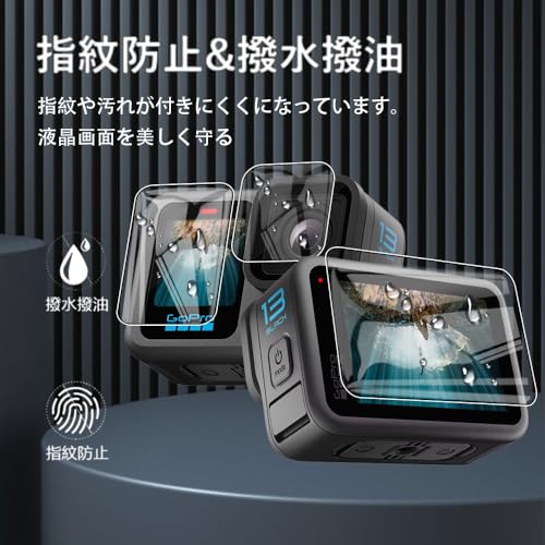 GoPro HERO 13 保護フィルム 指紋防止 自動吸着 撥水撥油 飛散防止 気泡ゼロ 6枚セットGoPro HERO 13 液晶保護フィル(メイン画面用2枚+サブ画面用2枚+LED保護フィルム2枚) 送料無料