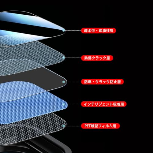 【強力吸着 飛散防止】:自動吸着、気泡入りにくい、操作が簡単です。飛散防止加工により、万が一ガラスが破損した場合も飛び散らず、破片は張り付いたままの状態