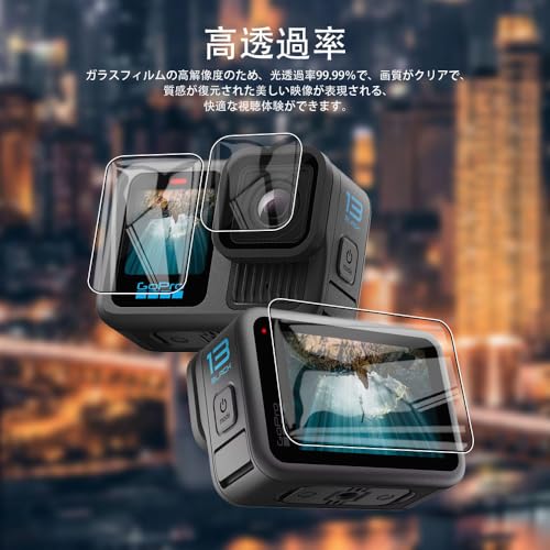 【薄型ガラス・極高透過率】厚さ0.33mmの超薄型で、透過率は99.99%。驚くほど高い透明度を誇っており、画面の鮮明さや美しさを損なわずに GoPro HERO 13 本来の美しい画面をお楽しみいただけます、高級感のある映像を演出する高透過率のフィルムなので。