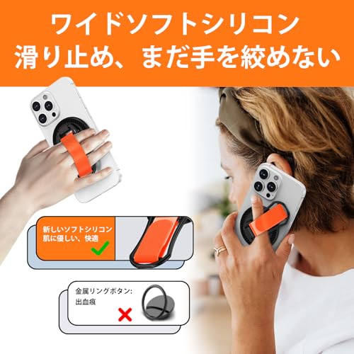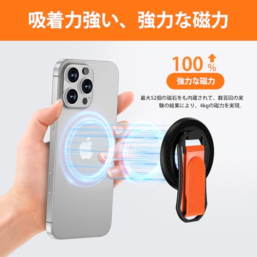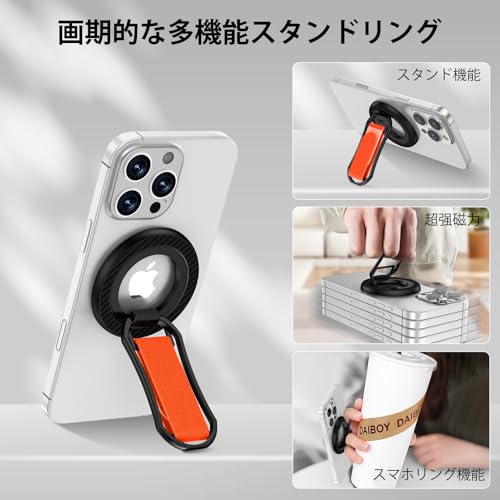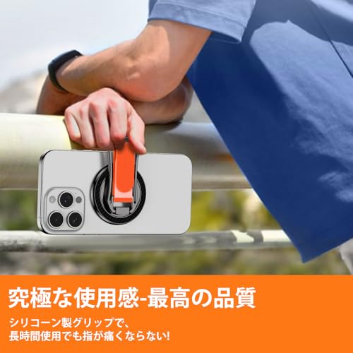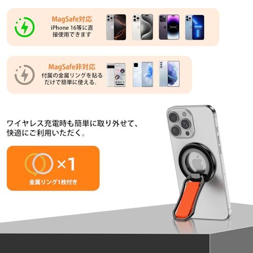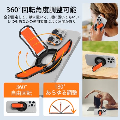 スマホリング スタンド 角度調整可 360°回転 薄型 マグセーフリング マグネット式 携帯リング スマホベルト スマホスライドベルト リングホルダー スマホスタンド スマホベルト スマホホルダー iPhone16 15 14 13 12 Xperia Android全機種対応 ブラック&オレンジ1個