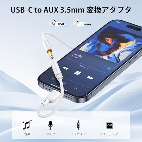 タイプC イヤホンジャック 変換アダプタ USB-C to 3.5 mm イヤホン ヘッドホンアダプター HiFi音質 変換ケーブル Type C to Aux ヘッドホンアダプター マイク / 音声通話可能 / 音量調節 / 音楽 ヘッドフォンジャックアダプタ iPhone 16 / 15 / iPad mini / i...